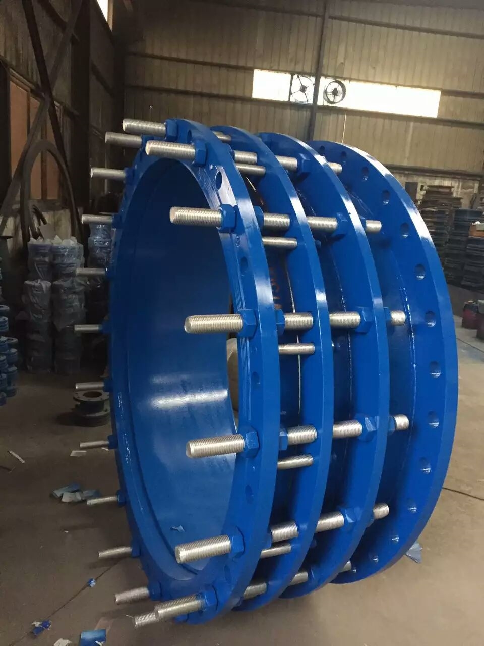 可拆式雙法蘭傳力接頭采用的是雙法蘭連接方式.安裝在管道上后,根據(jù)所需的伸縮距離進(jìn)行限位,擰緊螺母,彈性密封圈在螺母壓蓋的作用下依靠相,互斜度,緊壓在管子外圈起密封和連接作用,可拆式雙法蘭傳力接頭主要和管道閥門連接不但起到管道補(bǔ)償作用,更方便了閥門的維修及更換。