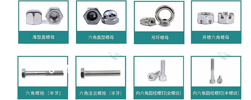 1. 包括六角螺母(GB6170/DIN934)、薄螺母(GB6172/DIN439)、重型螺母(公制、美制)、尼龍鎖緊螺母(DIN985-DIN982厚型)、全金屬鎖緊螺母(DIN980M)。2. 蓋型螺母(DIN1587)、法蘭面螺母(GB6177/DIN6923)、法蘭面螺母尼龍鎖緊螺母(DIN6926)、四角焊接螺母(DIN928)、六角焊接螺母(DIN